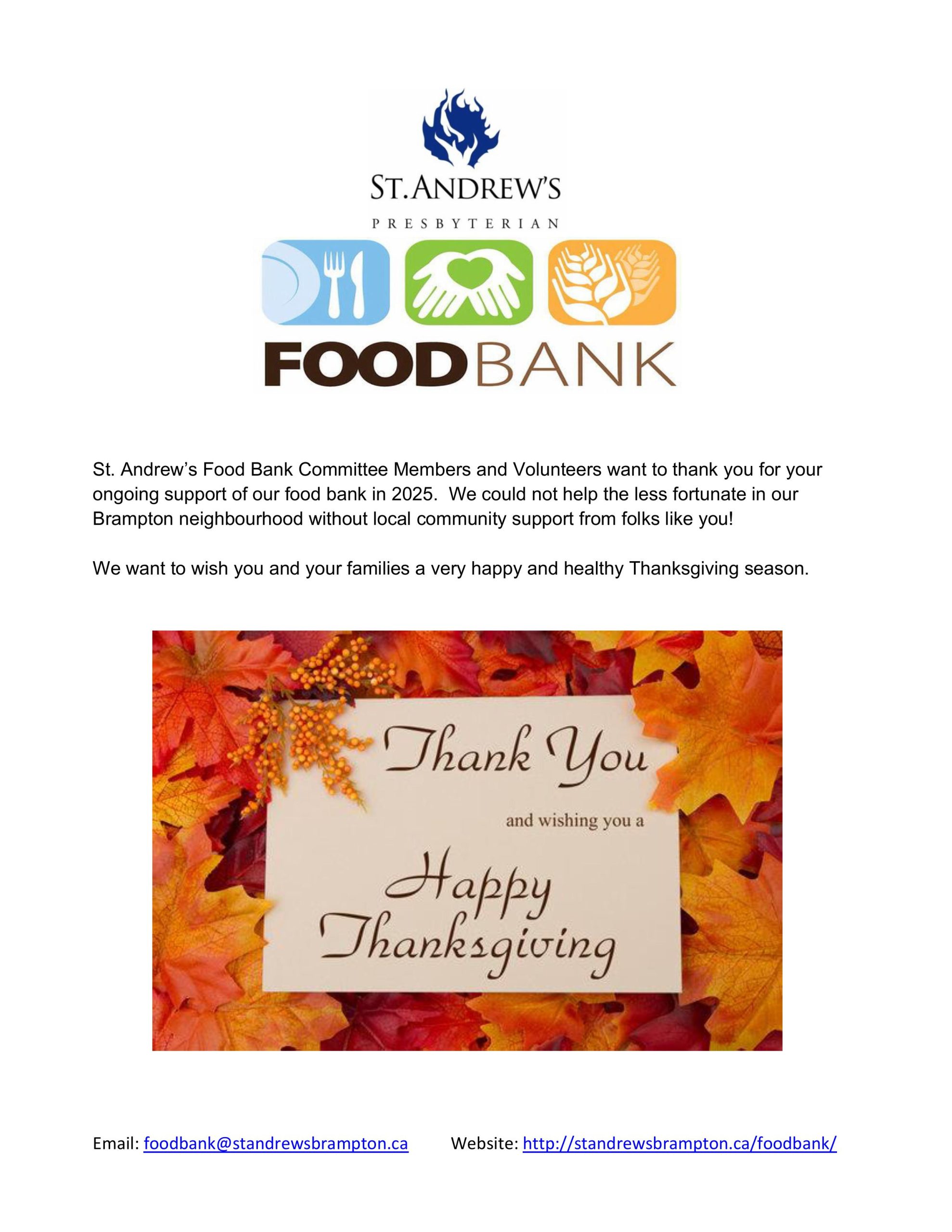 Now that we are worshipping in person we will no longer be having monthly Trunk offerings. For further information please get in touch with your elder.
